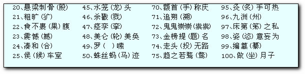 表中所列100個別字,大致可分為五種情況:一是讀音相同相近,如“食不果腹”誤為“食不裹腹”;二是字形相似,如“氣概”誤為“氣慨”;三是意義混淆,如“湊合”誤為“湊和”;四是不明典故,如“墨守成規(guī)”誤為“默守成規(guī)”,不知道“墨”指戰(zhàn)國時的“墨翟”;五是無視語文法規(guī),如“重疊”誤為“重迭”。