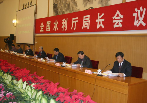 本站訊 在新的一年即將來臨之際,全國水利廳局長會議于2005年12月17日上午在北京隆重開幕。水利部黨組書記、部長汪恕誠出席會議并作題為《堅持以科學(xué)發(fā)展觀為統(tǒng)領(lǐng) 全面做好“十一五”水利工作》的工作報告(全文另發(fā)),人事部副部長尹蔚民出席會議并宣讀了《關(guān)于表彰全國水利系統(tǒng)先進(jìn)集體和勞動模范、先進(jìn)工作者的決定》,水利部副部長翟浩輝主持會議,水利部副部長鄂竟平,中紀(jì)委駐水利部紀(jì)檢組組長、水利部黨組成員張印忠,水利部副部長矯勇、周英出席會議。