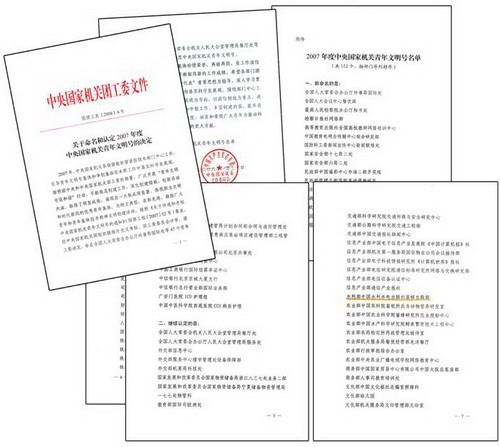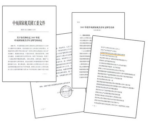 為樹立典型,表彰先進(jìn),激勵(lì)廣大青年和青年集體投身精神文明創(chuàng)建活動(dòng),2008年1月31日,中央國家機(jī)關(guān)團(tuán)工委命名47個(gè)青年集體、繼續(xù)認(rèn)定105個(gè)青年集體為2007年度中央國家機(jī)關(guān)青年文明號(hào),其中我社裝幀出版部再次通過續(xù)認(rèn),連續(xù)3年獲得此稱號(hào)。