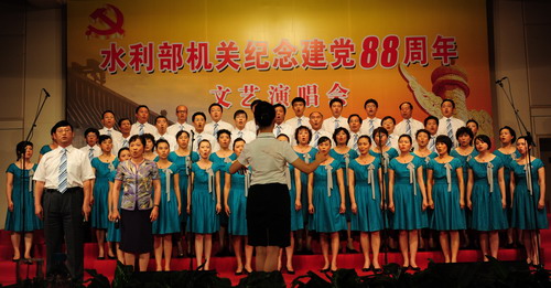 6月29日,水利部機(jī)關(guān)隆重舉行紀(jì)念建黨88周年文藝演唱會(huì)。我社組成的50人合唱隊(duì)以良好的精神面貌演唱的《英雄贊歌》獲得三等獎(jiǎng)。