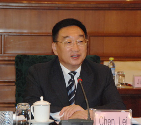 陳雷部長會見福勛主席一行,湯鑫華社長在座