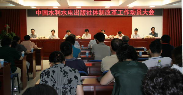 6月23日,我社召開體制改革工作動員大會,全面部署出版社當前和今后一個時期的轉制工作,動員全社干部群眾統一思想認識,采取扎實措施,加快改革步伐,圓滿完成出版社體制改革工作第一階段的任務。水利部黨組成員、副部長周英作重要講話,部黨組成員、辦公廳主任陳小江主持,社長湯鑫華作體制改革動員報告。部人事司司長劉雅鳴,辦公廳副主任陳茂生,財務司副司長赫崇成,人事司副司長、水利部出版社體制改革工作領導小組辦公室主任侯京民,直屬機關紀委書記徐開濯等領導出席會議。