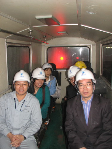 湯社長一行深入錦屏一級大壩、左岸墊座、地下廠房、大奔流料場、三灘料場、錦屏二級1#引水洞TBM(全斷面掘進機Tunnel Boring Machine的英文簡稱,目前最先進的自動化大型硬巖隧道開挖襯砌成套設備,長達二三百米)、模薩溝料場、帶式輸送系統(tǒng)以及機電安裝等工程項目,廣角度、多層次、全方位地對錦屏水電工程進行了考察。錦屏水電站恢弘磅礴的氣勢與規(guī)模,給考察人員以強烈的震撼及深深的感動。