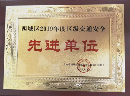 近日,北京市西城區交通安全工作部門聯席會對2019年度交通安全先進集體和個人進行表彰,我集團公司喜獲“西城區2019年度交通安全先進單位”稱號,平秀海榮獲“西城區2019年度交通安全優秀管理干部”稱號。