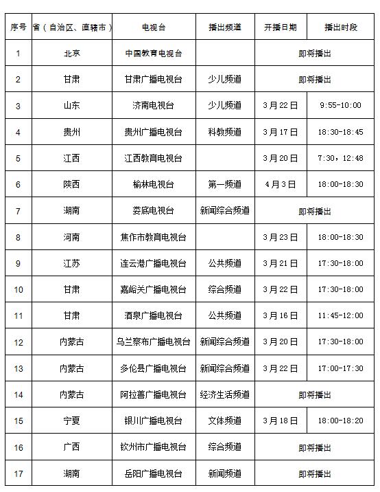 各電視臺播出時(shí)間表: