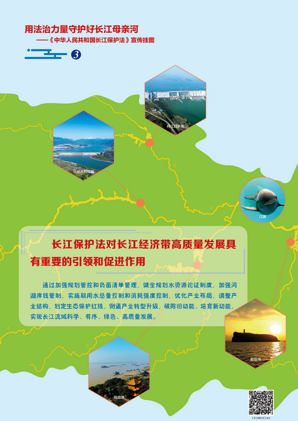 《長江保護法》將習(xí)近平總書記關(guān)于長江保護的重要指示要求和黨中央重大決策部署轉(zhuǎn)化為國家意志和社會行為準(zhǔn)則;把保護和修復(fù)生態(tài)環(huán)境擺在壓倒性位置,為長江母親河永葆生機活力、中華民族永續(xù)發(fā)展提供了法治保障;對長江經(jīng)濟帶高質(zhì)量發(fā)展具有重要的引領(lǐng)和促進作用。《長江保護法》是中國特色社會主義法制建設(shè)的重大實踐,也是長江流域保護和治理發(fā)展史上的一座里程碑。掛圖介紹了《長江保護法》實施的重要意義、基本內(nèi)容、適用范圍以及在法律和制度層面的創(chuàng)新等,重點闡釋了涉水條目相關(guān)內(nèi)容。(標(biāo)準(zhǔn)化出版分社供稿)
