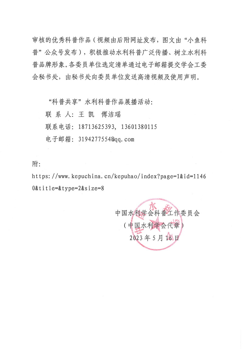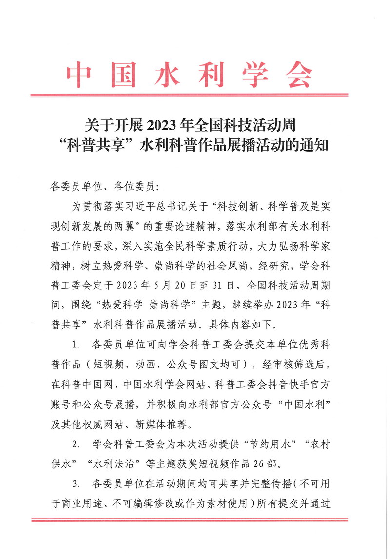附件:《關于開展2023年全國科技活動周“科普共享”水利科普作品展播活動的通知》