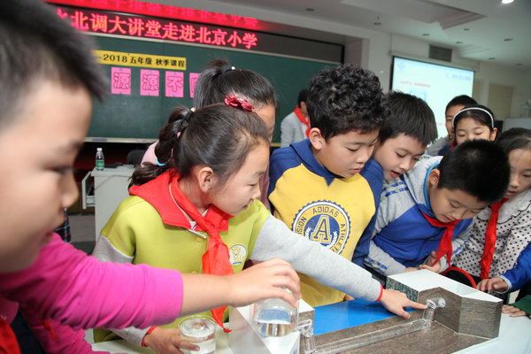 “誰想和老師一起動(dòng)手,親自體驗(yàn)如何建設(shè)南水北調(diào)工程?”聽說可以現(xiàn)場搭設(shè)渡槽和倒虹吸模型,同學(xué)們踴躍舉手,迫不及待跑上了講臺(tái)。大家通過動(dòng)手實(shí)際操作,了解了水利工程知識(shí)。五年級(jí)7班的劉響同學(xué)感慨地說,“我們做事情要像南水北調(diào)建設(shè)一樣,精益求精!”