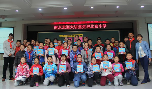 講課結(jié)束后,由我社水文化出版分社社長李亮向北京小學(xué)的老師和同學(xué)們介紹并贈(zèng)送了我社策劃出版的《李小睿和水仙子·南水奇游記》少兒科普?qǐng)D書。書中講述了由幾位小學(xué)生組成的小小探險(xiǎn)隊(duì)跟隨水仙子從丹江口水庫出發(fā),在中線和東線工程中經(jīng)歷了各種有趣探險(xiǎn)的故事。小讀者們通過有趣的插畫和文字,了解到了南水北調(diào)的由來作用、科學(xué)技術(shù)、文物保護(hù)、水庫移民、環(huán)境保護(hù)等等知識(shí),體會(huì)到甘甜南水的來之不易和彌足珍貴。