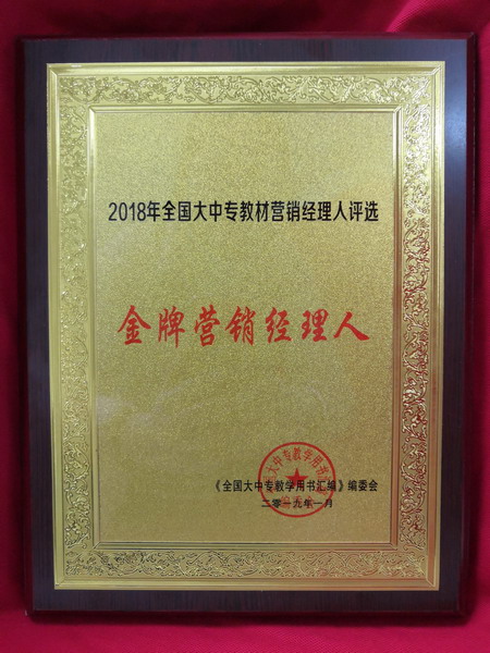 峰會期間,主辦方舉辦了“2018年全國優秀教材經銷商”和“2018年全國大中專教材金牌營銷經理人”頒獎儀式。經評委會層層甄選脫穎而出的60家教材經銷商和40位金牌營銷經理人到場領獎,我社營銷中心的紀紅和萬水公司的周益丹榮獲“2018年全國大中專教材金牌營銷經理人”。