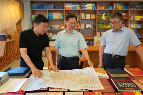 為了進一步扎實推進主題教育調查研究工作,2023年6月6日,集團公司黨委書記、董事長涂曙明帶隊赴中國地圖出版集團調研交流。 調研組參觀了地圖出版集團產品展示