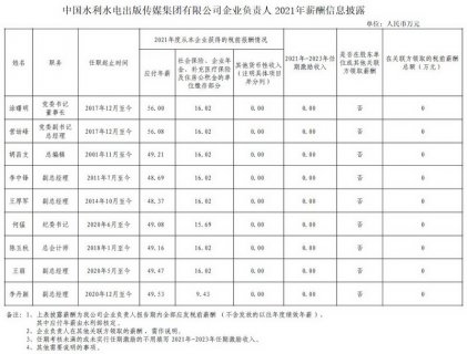 按照《國務院關于改革國有企業工資決定機制的意見》(國發〔2018〕16號)的規定,現將本企業2021年工資分配信息披露如下: 中國水利水電出版傳媒集團有限公司