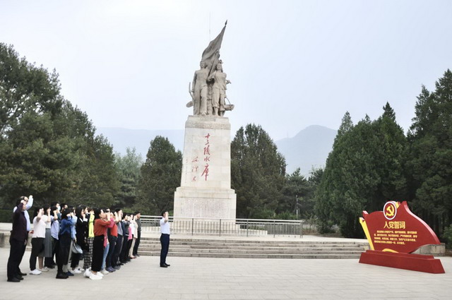 下午,全體黨員來到十三陵水庫愛國主義教育基地進行參觀學習。大家觀看了紀錄片,參觀了水庫大壩長廊展廳,重溫了十三陵水庫修建的光榮歷史。通過一張張老照片和一件件舊展品,近距離感受了革命先輩們的家國情懷,深刻理解了人民群眾自力更生、艱苦奮斗的堅定信仰,更深刻體會到十三陵水庫修建歷程是中國共產黨不忘初心、牢記使命的一個生動縮影,是中國人民在社會主義革命和建設道路上艱辛探索、不斷開拓、凱歌行進的一個生動縮影。隨后,大家來到十三陵水庫紀念碑公園,紀念碑四面分別篆刻著毛澤東、劉少奇、周恩來、朱德四位國家領導人的題詞,句句話都寄托了老一輩國家領導人的殷切期望和要求,大家也感受到了沉甸甸的使命和責任。最后,在紀念碑前,黨委書記涂曙明帶領全體黨員進行了莊嚴宣誓,重溫了入黨誓詞。