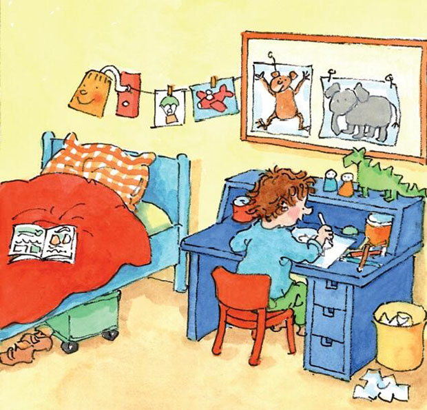 與繪圖同樣重要的當然是生動的故事情節和語言。好的英語啟蒙繪本,故事情節一定有趣又貼近生活,語言一定簡潔又地道。在此我推薦中國水利水電出版社的《Tom一家人》?!禩om一家人》作為英語啟蒙書從荷蘭引進時,該套書已經在荷蘭暢銷多時,可以說是荷蘭第一暢銷童書也不為過。因為它的內容非常貼近孩子的生活。一套書中包括《我的家庭》《我的學?!贰段业纳铡贰段业姆孔印?,Tom所過的生活和中國小朋友的十分相似又略有不同,會讓小朋友感覺親切又有趣,全套書以英國小男孩Tom為第一人稱,感覺就像在讀小Tom的日記,語言簡單又活潑。